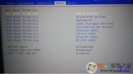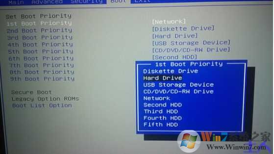 3、改启动项 在第一启动项1ST Boot Priority把第一启动项改为硬盘hard drive为第一启动项