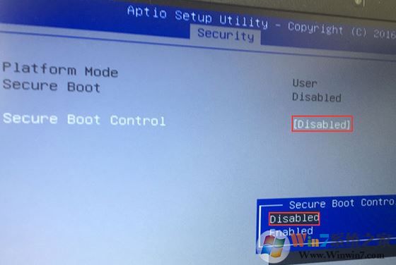 1、重启笔记本按esc进入BIOS设置,然后按F7进入高级模式,按→方向键移动到Security,选择Secure Boot,然后回车进入把Secure Boot control选enabled改为disabled关闭安全启动,然后按F10保存重启;