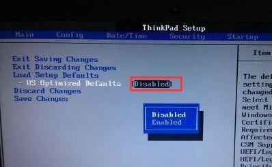 4、在Restart下,选择OS Optimized Defaults回车,改成Disabled或Other OS,接着选择Load Setup Defaults回车进行加载,然后按F10保存设置。