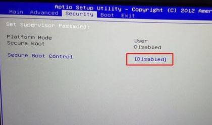 1、重启笔记本按F2进入BIOS设置,在Security下把Secure Boot Control设置为Disabled,如下图所示;