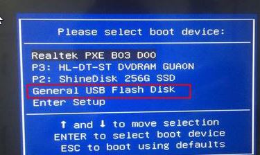 4、保存设置后自动重启进入LOGO画面时,一直按重启按F12/F7/ESC快捷键,在启动菜单中选择USB启动,如下图所示;