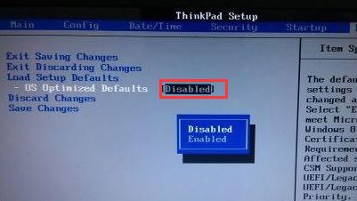 3、在Restart下,选择OS Optimized Defaults回车,改成Disabled或Other OS,接着选择Load Setup Defaults回车进行加载,然后按F10保存设置。