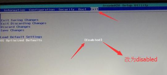 2、转到Exit,把OS Optimized Defaults设置为Disabled或Other OS;