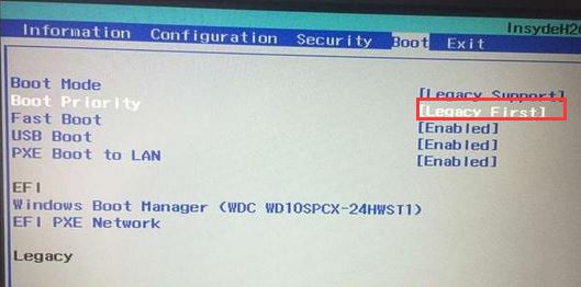 5、再把Boot Priority设置成Legacy First,按F10弹出窗口选择yes回车;
