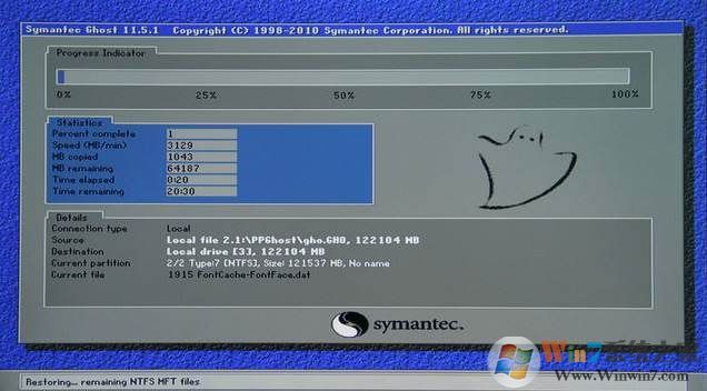 13、重启之后,系统部署开始,几分种后Win7系统就可以安装完毕了。