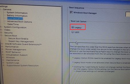 注:戴尔笔记本每做一步BIOS更改记得应用一下