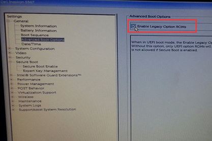 2、切换到Advanced Boot Options将右边的Enable legacy option roms选项打勾,如下图所示;