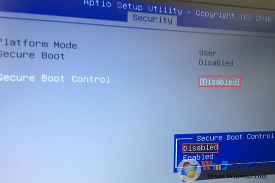 1、重启笔记本按esc进入BIOS设置,然后按F7进入高级模式,按→方向键移动到Security,选择Secure Boot,然后回车进入把Secure Boot control选enabled改为disabled关闭安全启动,然后按F10保存重启;