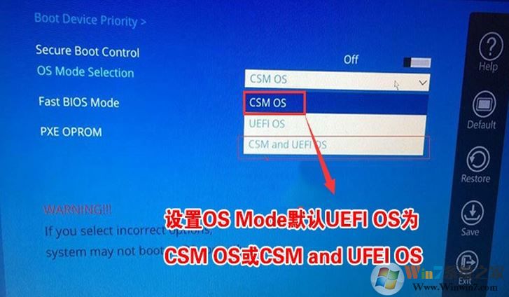 3、关闭安全启动后,BOOT选项中就会多出一个OS Mdoe Selection选项,我们将默认的UEFI OS改为CSM OS或CSM and UEFI OS,如下图所示;