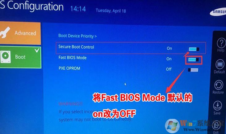 4、将Fast BIOS Mode后面的开关关掉(On变成Off),如下图所示;