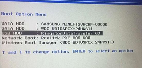 4、在计算机重新启动至“Lenovo”LOGO画面时,并按下笔记本键盘上“F12”键或“Fn+F12”键进入笔记本的引导设置界面选择USB HDD识别到U盘启动进入PE;