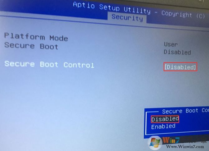 1、重启笔记本按esc进入BIOS设置,然后按F7进入高级模式,按→方向键移动到Security,选择Secure Boot,然后回车进入把Secure Boot control选enabled改为disabled关闭安全启动,然后按F10保存重启;
