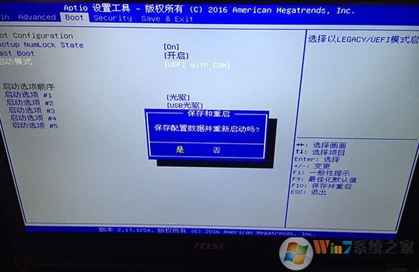 微星GE72 6QD怎么装win7步骤二:BIOS修改与U盘启动