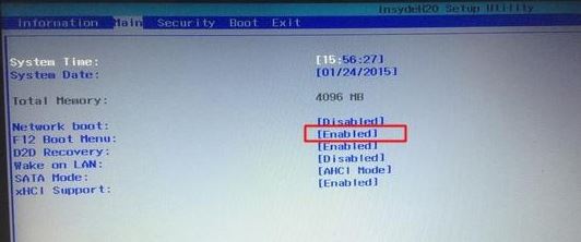 4、转到Main,选择F12 Boot Menu回车,设置为Enabled,按F10选择Yes回车保存修改,如下图所示;
