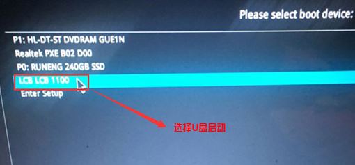 5、插入U盘启动盘,重启按ESC选择识别到U盘启动项,回车;