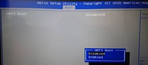 3、选择UEFI Boot回车设置成Disabled,如果有CSM,设置为Enabled,然后按F10保存设置;