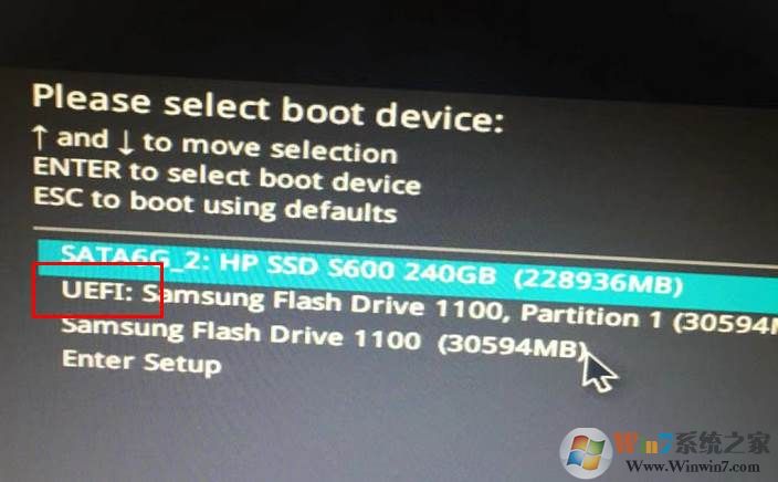 2、出现选择界面之后,选择UEFI U盘启动;