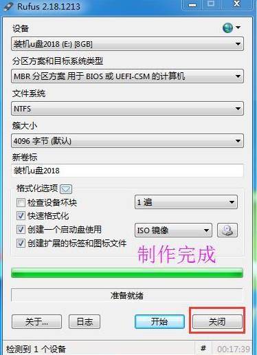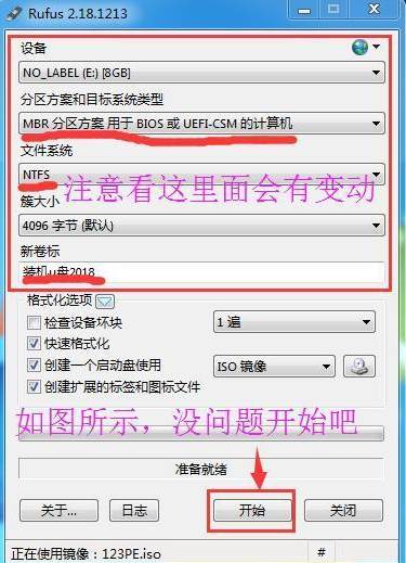文件系统也顺便要改成NTFS格式,确定无误后点开始。