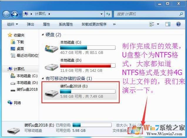 制作完成的启动U盘,文件格式是NTFS,支持4G以上文件哦。