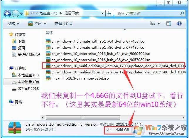 这里演示的文件我们使用的是超过4G的64位win10系统文件