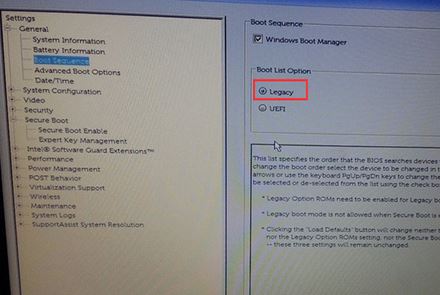 注:戴尔笔记本每做一步BIOS更改记得应用一下
