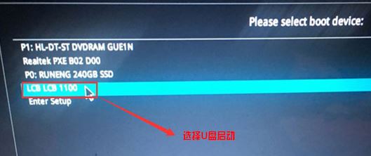 5、插入U盘启动盘,重启按ESC选择识别到U盘启动项,回车,如图: