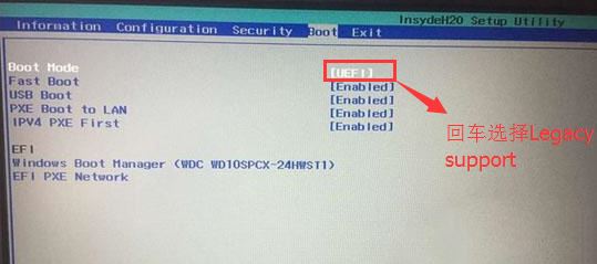 4、切换到Boot,把Boot Mode从UEFI改成Legacy Support;