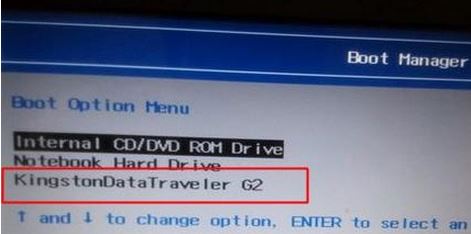 4、插入制作好的U盘启动盘,重启按ESC再按F9调出启动管理对话框,选择USB HDD识别到U盘启动进入PE,回车;