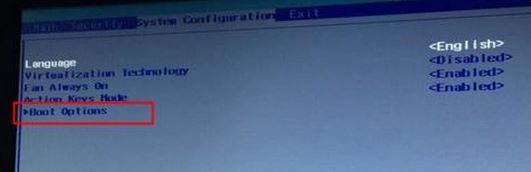2、移动键盘右键头到System Configuration下,选择Boot Options,按回车键进入设置;
