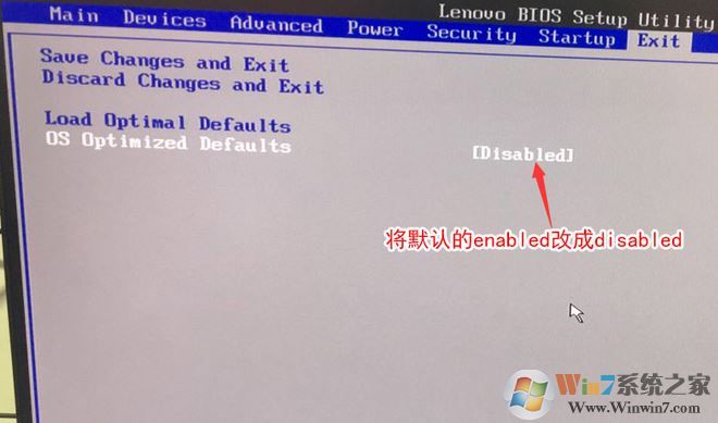 2、转到Exit,把OS Optimized Defaults设置为Disabled;