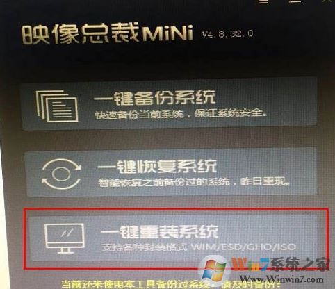 5、在打开的 映像总裁界面,点击 一键重装系统 按钮;