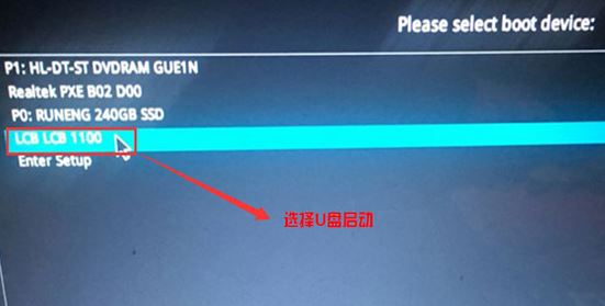 5、插入U盘启动盘,重启按ESC选择识别到U盘启动项,回车;