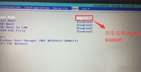 4、切换到Boot,把Boot Mode从UEFI改成Legacy Support;