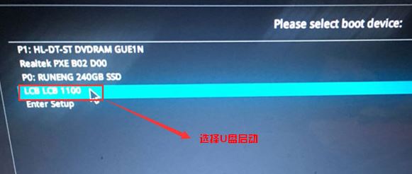5、重启按ESC选择识别到U盘启动项回车就可以U盘启动了;