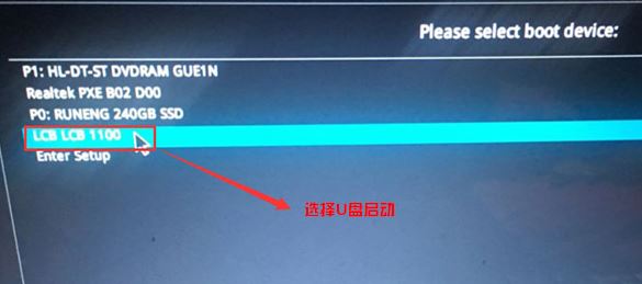 5、重启按ESC选择识别到U盘启动项回车就可以U盘启动了;