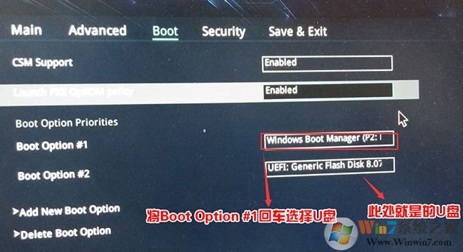 4、继续把boot option#1选项改为U盘为第一启动项,设置为U盘启动,如下图所示;