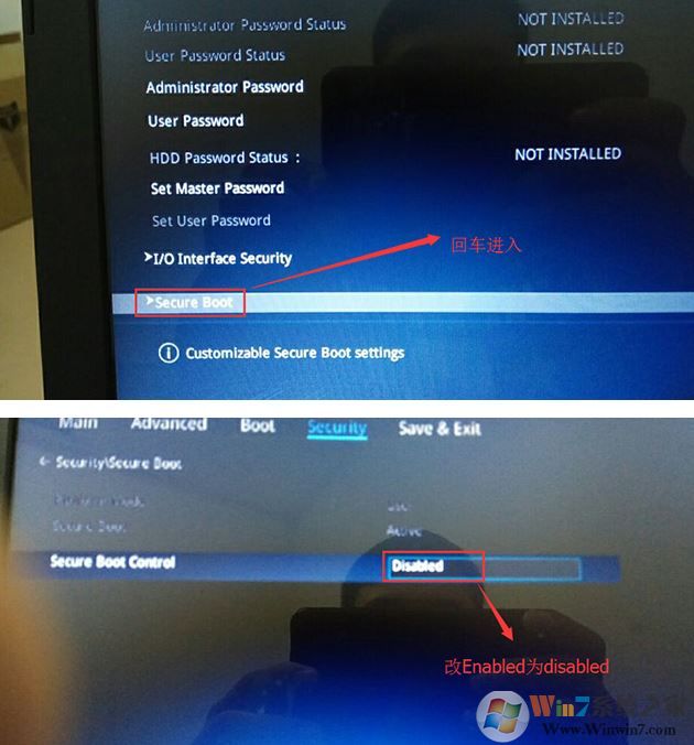 1、重启笔记本按esc进入BIOS设置,然后按F7进入高级模式,按→方向键移动到Security,选择Secure Boot,然后回车进入把Secure Boot control选enabled改为disabled关闭安全启动,然后按F10保存重启;