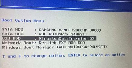 7、插入制作好的U盘启动盘,重启按F12或FN+F12调出启动管理对话框,选择USB HDD识别到U盘启动进入PE,回车进入PE: