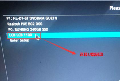 5、重启按ESC选择识别到U盘启动项回车就可以U盘启动了;
