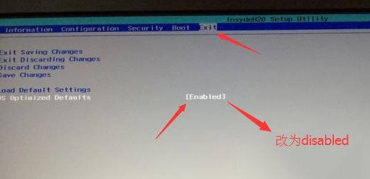 2、转到Exit,把OS Optimized Defaults设置为Disabled或Other OS;