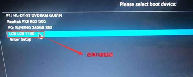 4、插入U盘启动盘,重启按ESC选择识别到U盘启动项,回车;