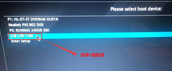 4、插入U盘启动盘,重启按ESC选择识别到U盘启动项,回车;