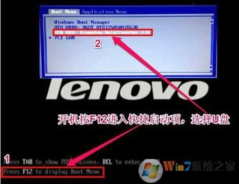5、保存设置后自动重启进入LOGO画面时,一直按F12,选择U盘启动,如下图所示;