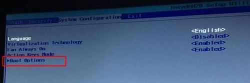 2、移动键盘右键头到System Configuration下,选择Boot Options,按回车键进入设置;