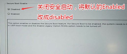 1、开机一直按F2进入BIOS,按F2进入BIOS界面,切换到secure BOOT页面,选择secure Boot Enable按回车改成Disabled,关闭安全启动,否则安装win7后启动失败,如图所示;