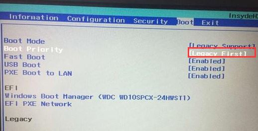 5、再把Boot Priority设置成Legacy First,按F10弹出窗口选择yes回车;