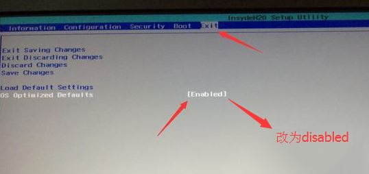 2、转到Exit,把OS Optimized Defaults设置为Disabled或Other OS,如下图所示;