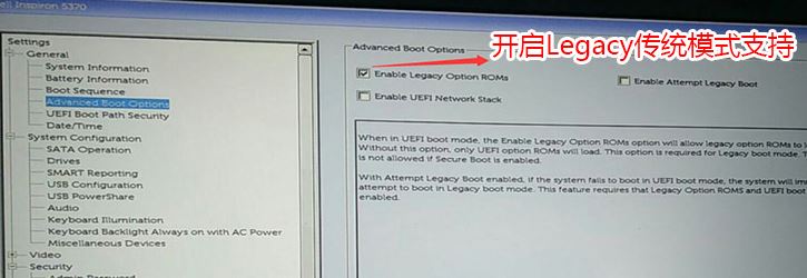 戴尔Latitude 3580预装win10改win7步骤二:BIOS修改与U盘启动