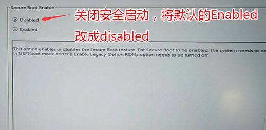1、开机一直按F2进入BIOS,按F2进入BIOS界面,切换到secure BOOT页面,选择secure Boot Enable按回车改成Disabled,如图所示;