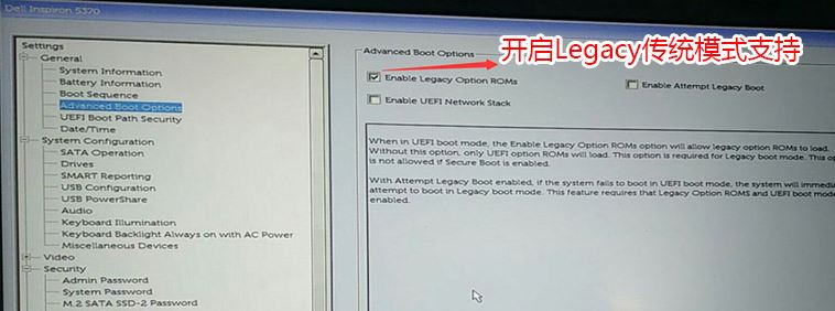 戴尔Latitude 5580装win7旗舰版教程步骤二:BIOS修改与U盘启动